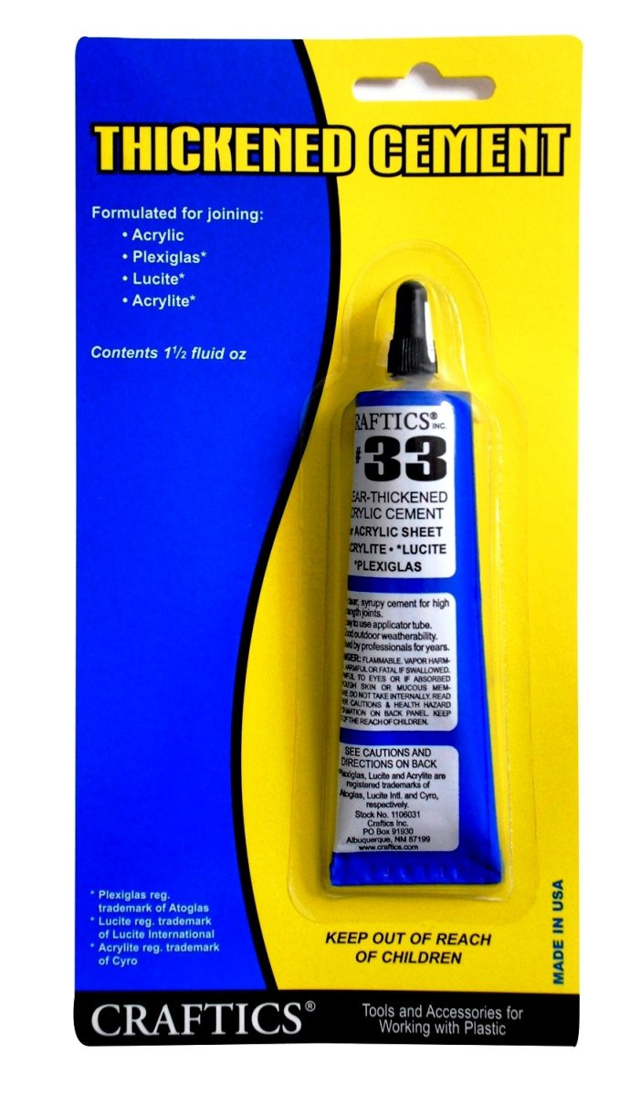 Craftics Thickened Cement is a fast-setting, medium-bodied acrylic cement designed for high-strength bonding. This versatile cement not only works with acrylic but also bonds rigid PVC, ABS, styrene, butyrate, and polycarbonate to themselves and each other, as well as other plastics and porous surfaces. Its thickened formula is ideal for filling small gaps and creating strong, clear joints. Each tube includes an applicator tip for precise application.
